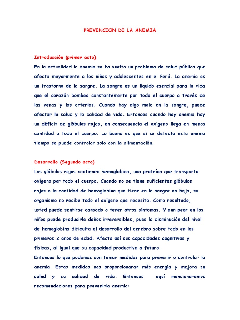 Habiendo hecho las recomendaciones para la prevención de la anemia