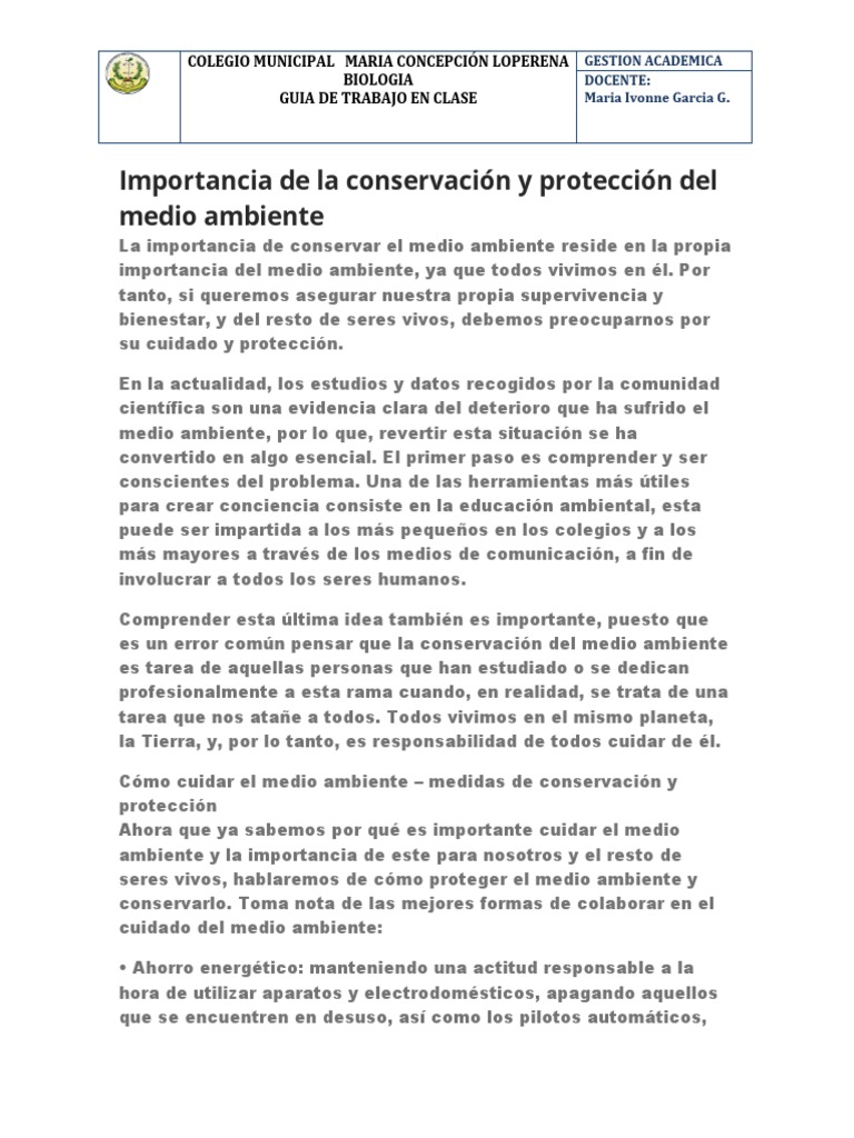 importancia del medio ambiente, ya que todos vivimos en él. Por