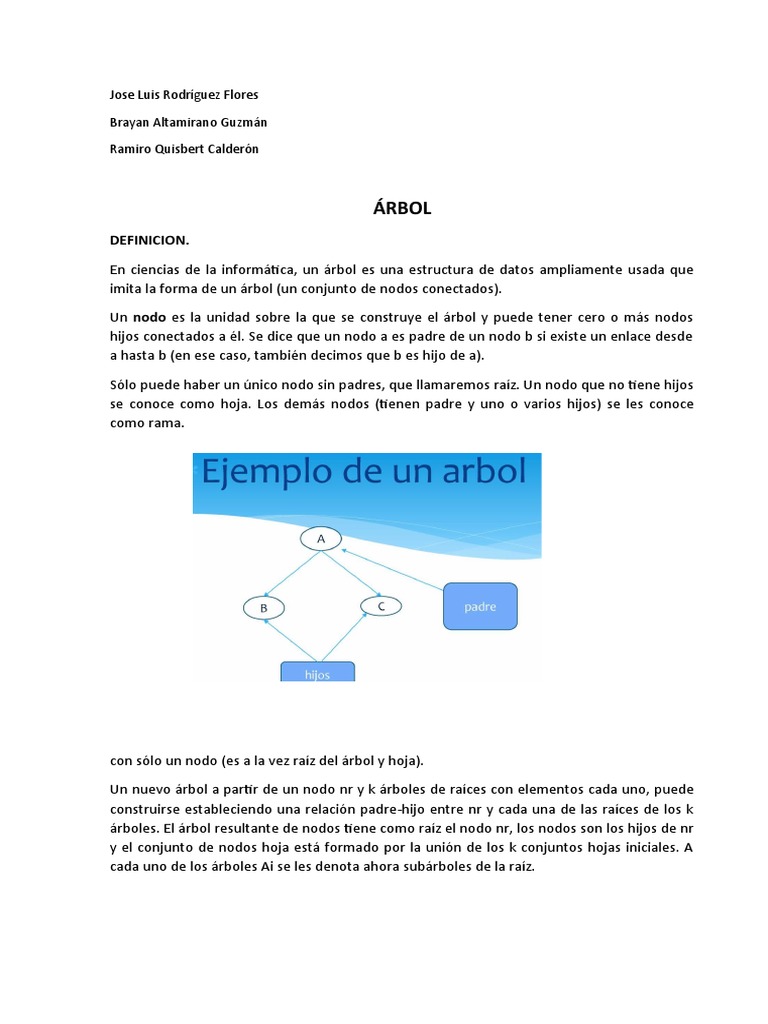 se conoce como hoja. Los demás nodos (tienen padre y uno o varios hijos) se les conoce