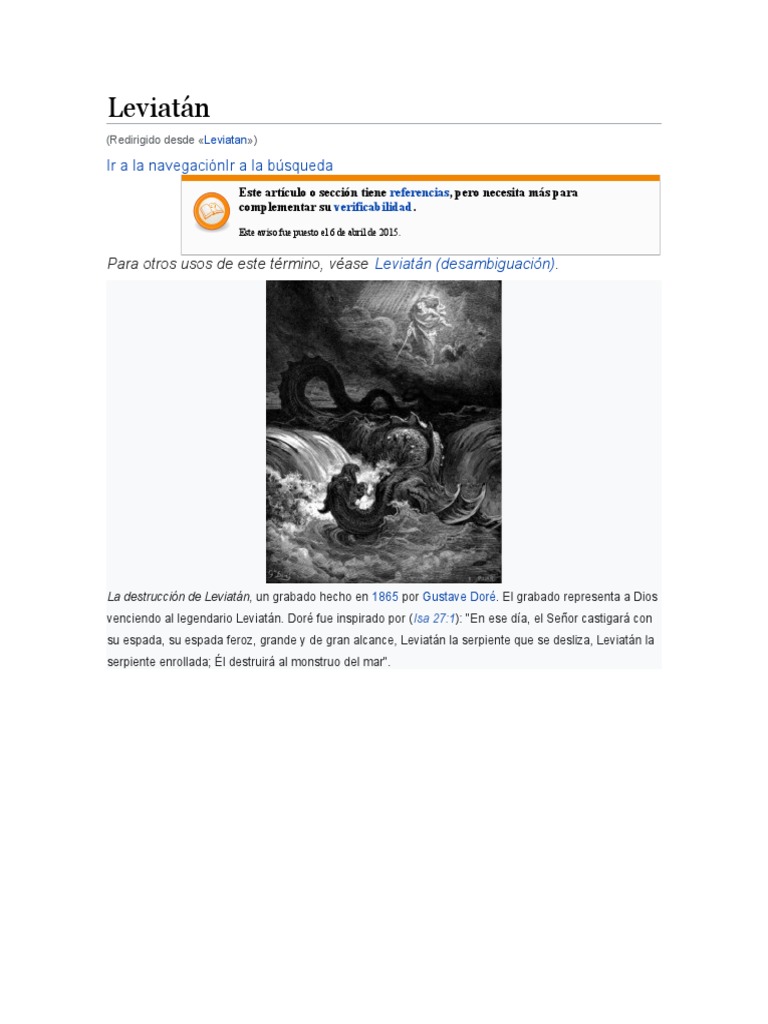Leviatán (del hebreo ִלוְי ָָתן, liwyatan, enrollado) es una bestia marina narrada en la