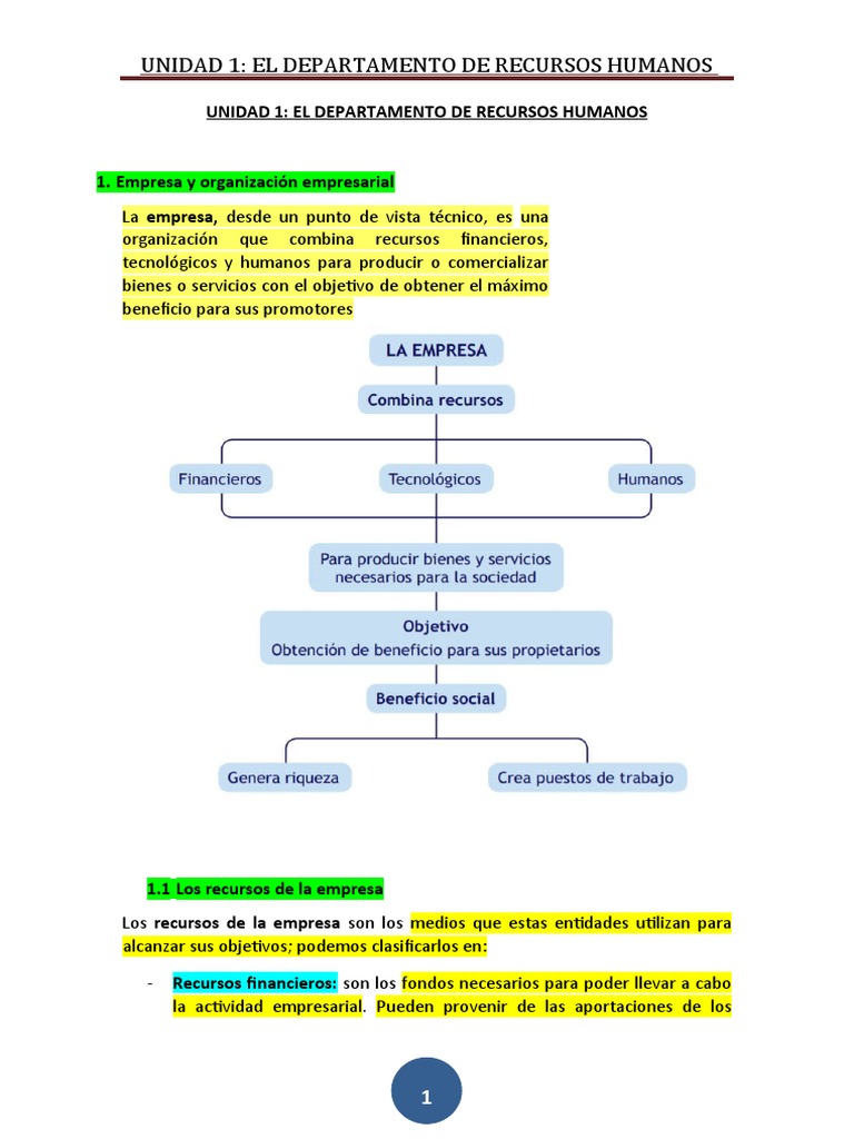 UNIDAD 1: EL DEPARTAMENTO DE RECURSOS HUMANOS