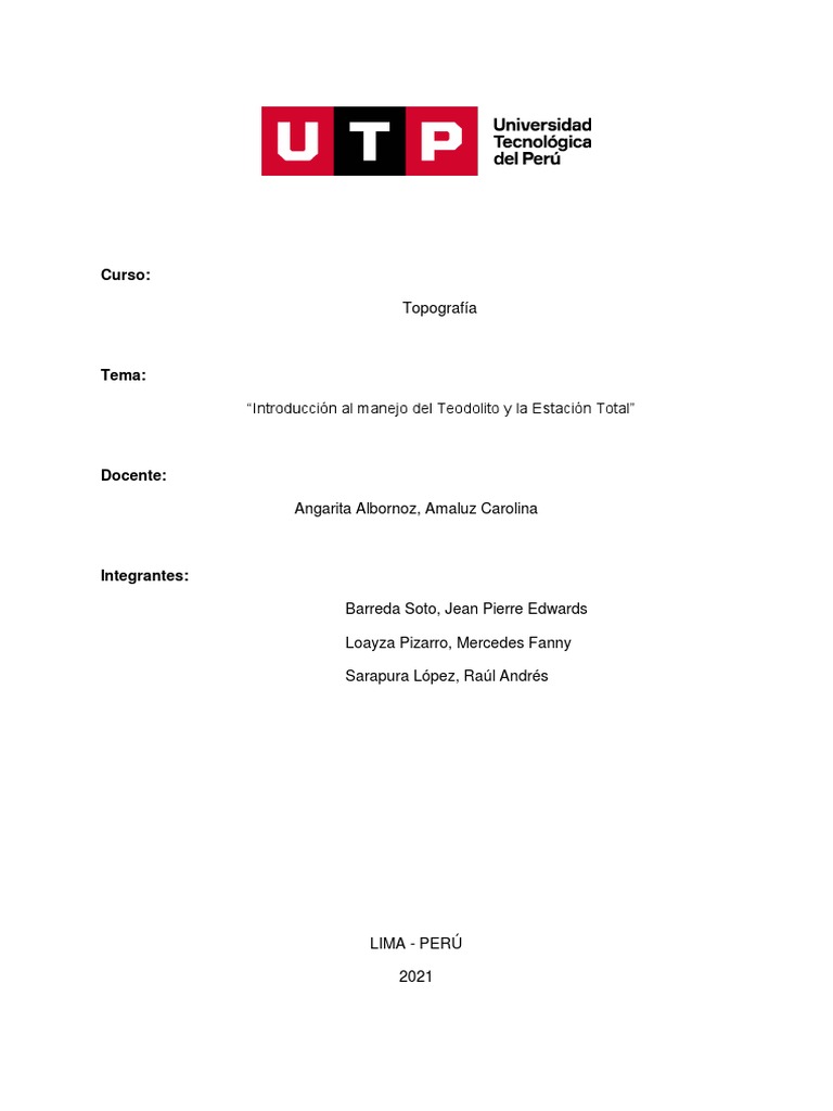 En este informe abordaremos sobre el manejo del Teodolito y la estación total y las