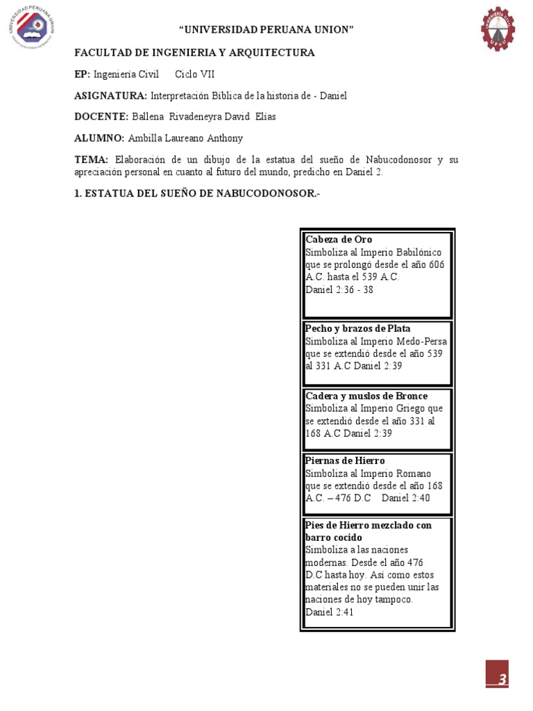 1. ESTATUA DEL SUEÑO DE NABUCODONOSOR.-