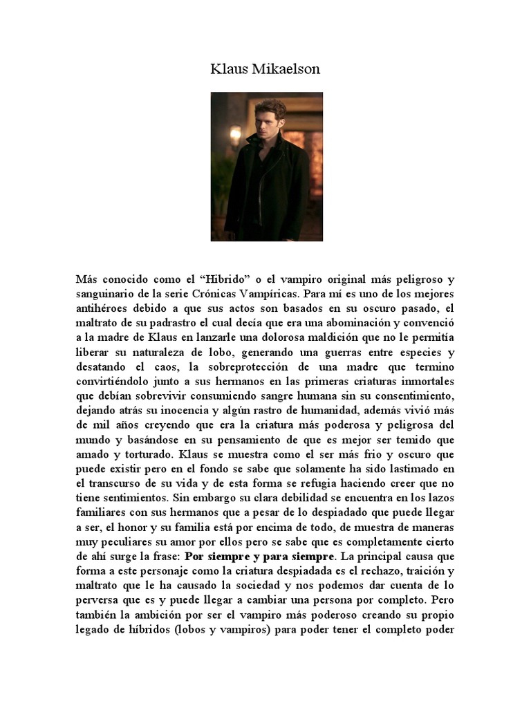 amado y torturado. Klaus se muestra como el ser más frio y oscuro que