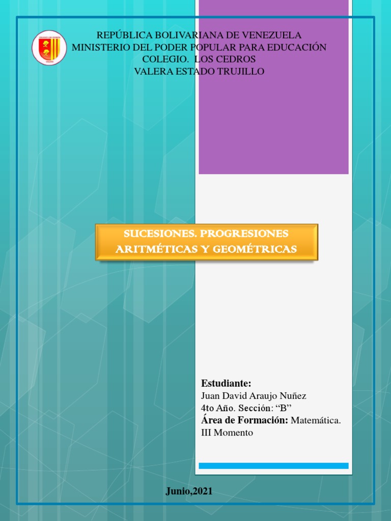 término anterior. Las progresiones se clasifican en progresiones aritméticas y geométricas.