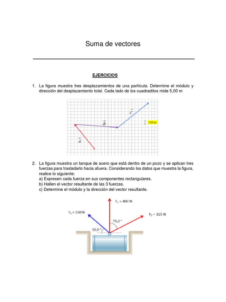 dirección del desplazamiento total. Cada lado de los cuadraditos mide 5,00 m