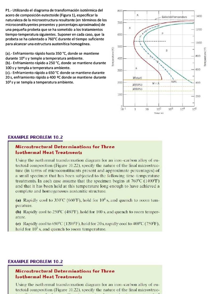 P4.- (A) Utilizando el diagrama de transformación isotérmica del acero con 1.13 %C (Figura 2), determinar la