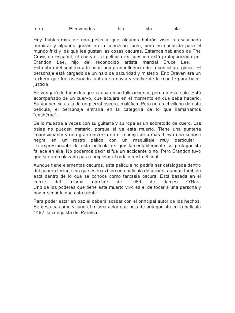 Crow, en español, el cuervo. La película en cuestión está protagonizada por