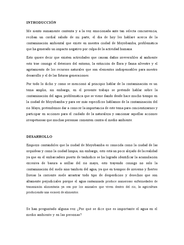 la ciudad de Moyobamba y para ser más específicos hablamos de la contaminación del