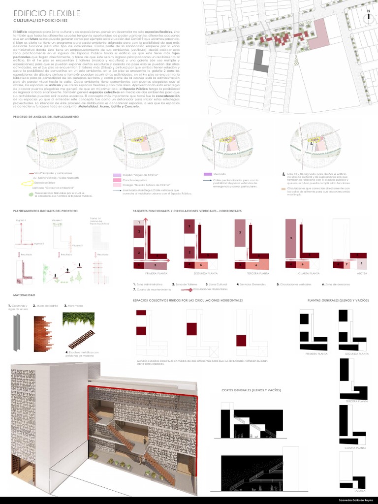 El Edificio asignado para Zona cultural y de exposiciones, pensé en desarrollar no solo espacios flexibles, sino