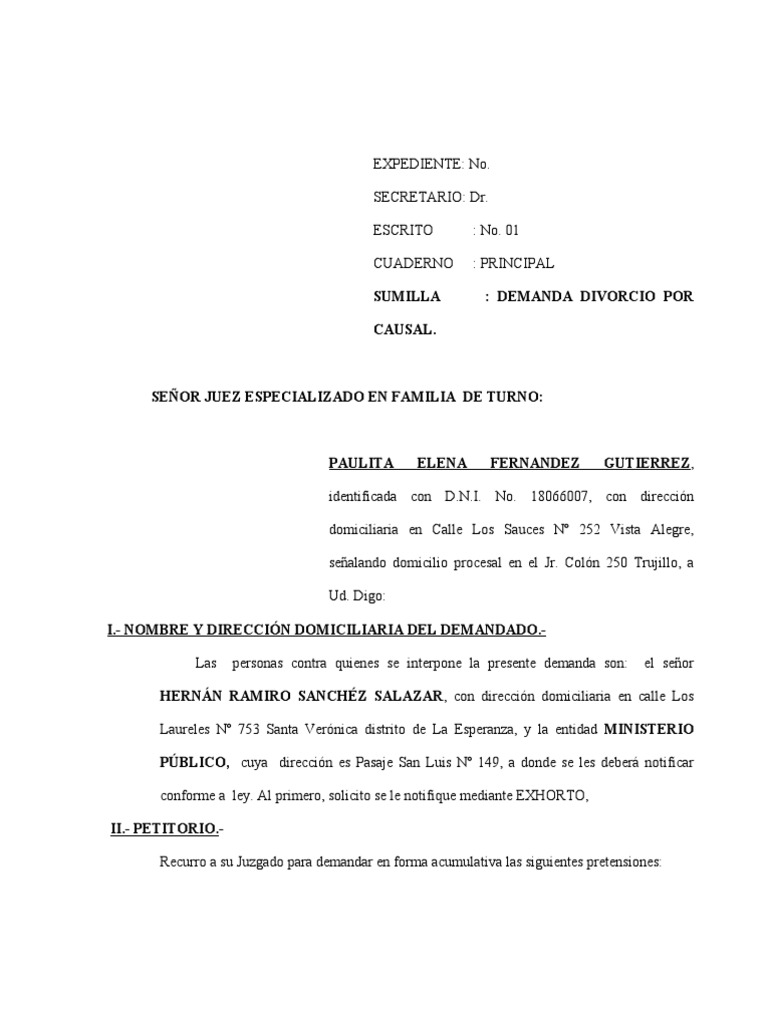 Recurro a su Juzgado para demandar en forma acumulativa las siguientes pretensiones:
