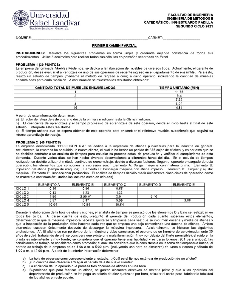 a) La hoja de observaciones correspondiente al estudio. ¿Cuál es el tiempo estándar de producción de un afiche?