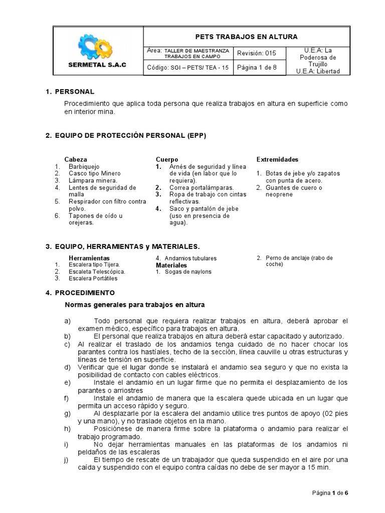 Procedimiento que aplica toda persona que realiza trabajos en altura en superficie como