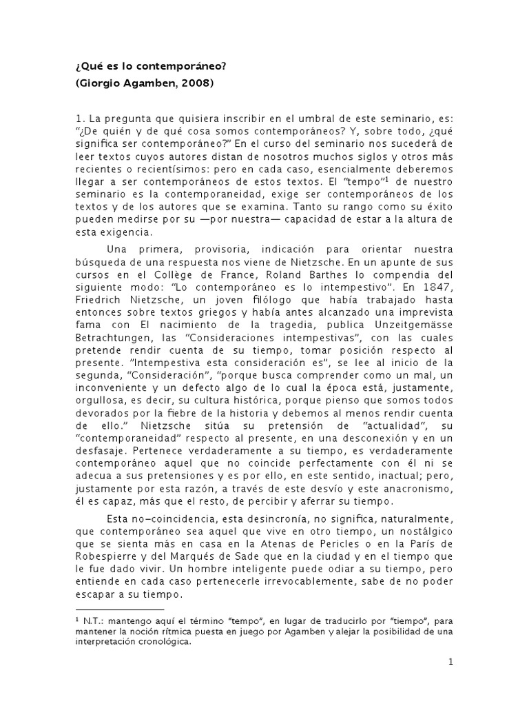 significa ser contemporáneo?” En el curso del seminario nos sucederá de