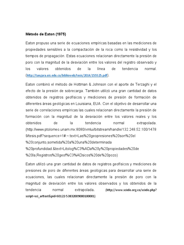 Eaton combinó el método de Hottman & Johnson con el aporte de Terzaghi y el