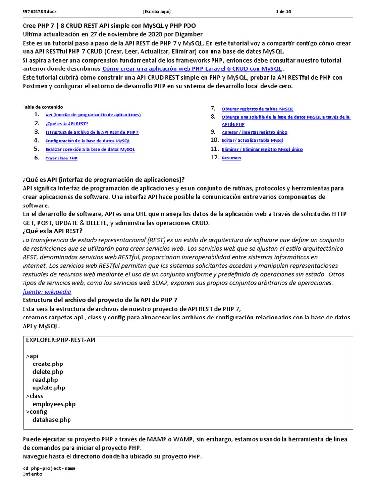 Este tutorial cubrirá cómo construir una API CRUD REST simple en PHP y MySQL, probar la API RESTful de PHP con