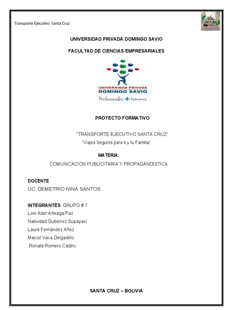 NOMBRE DE LA EMPRESA: Transporte Ejecutivo Santa Cruz
