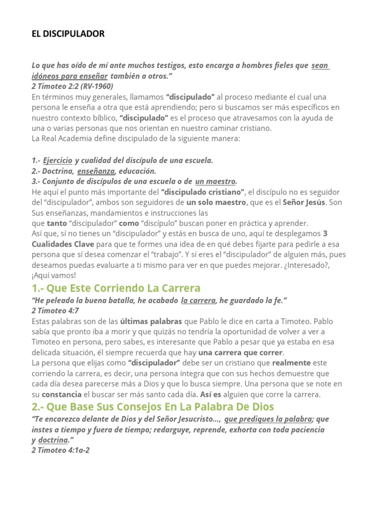 La persona que elijas como “discipulador” debe ser un cristiano que realmente este corriendo la