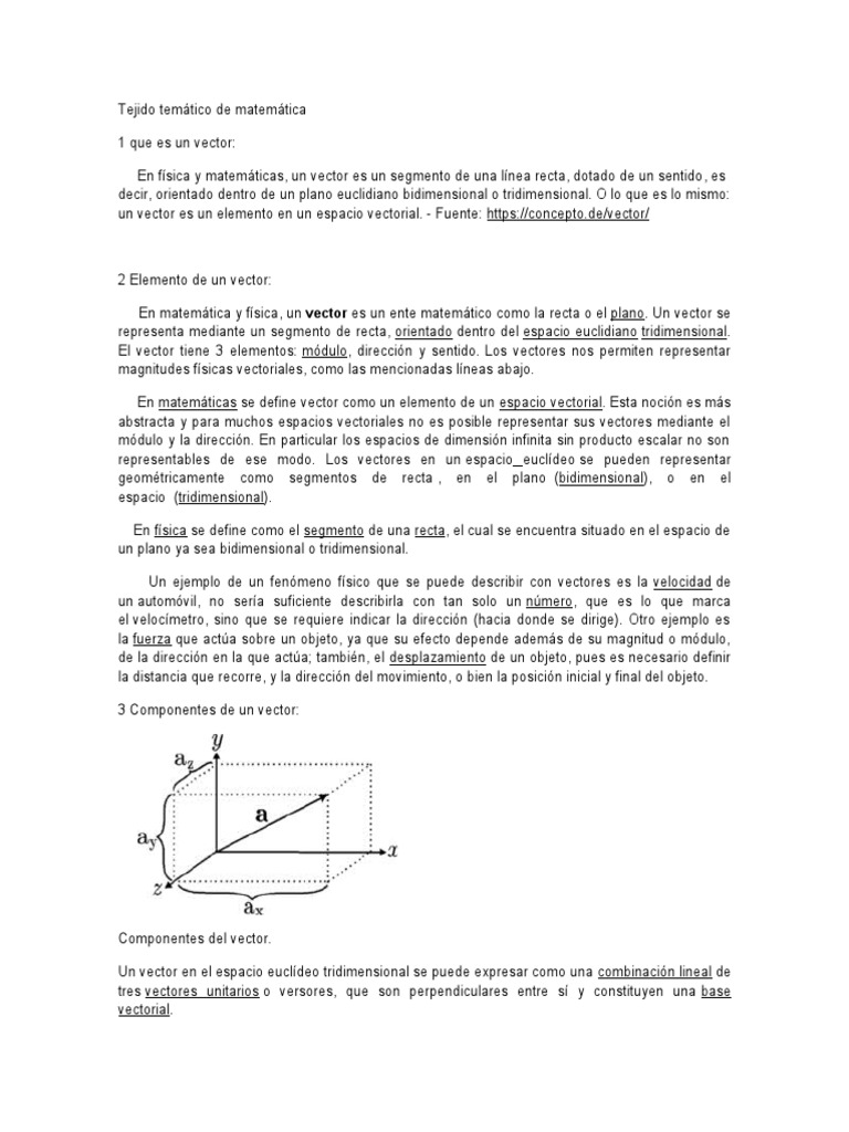 unos componentes respecto a dicha base. Dado un vector solo existen un número finito de