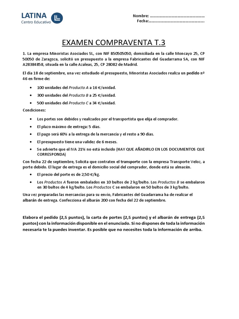 EXAMEN COMPRAVENTA T.3
