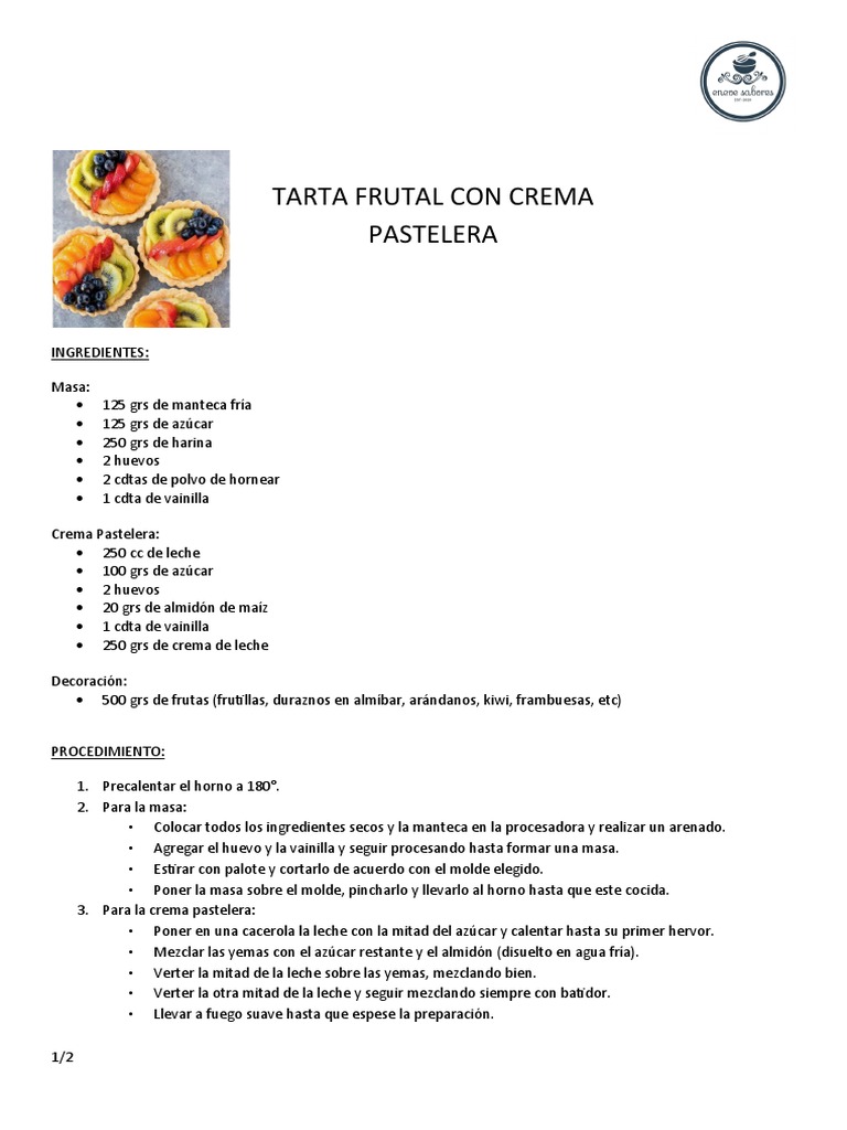 • Rellenar con la crema la tarta o las mini tartaletas. Decorar con las frutas cortadas. Llevar al frio.