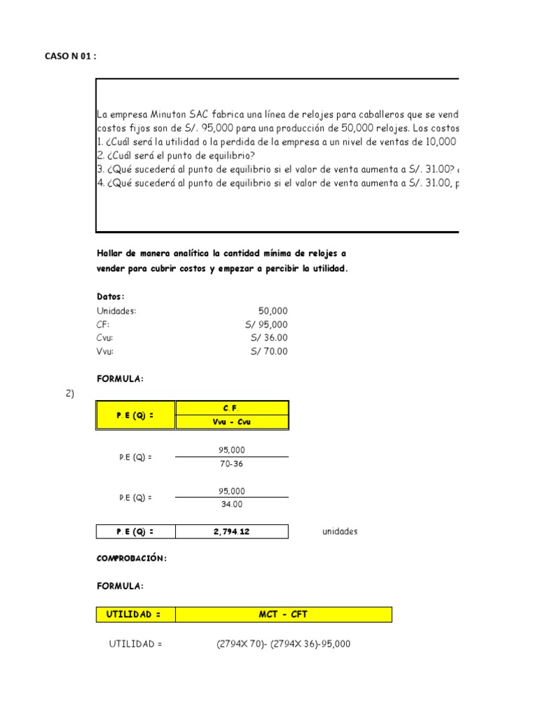 costos fijos son de S/. 95,000 para una producción de 50,000 relojes. Los costos variables son de