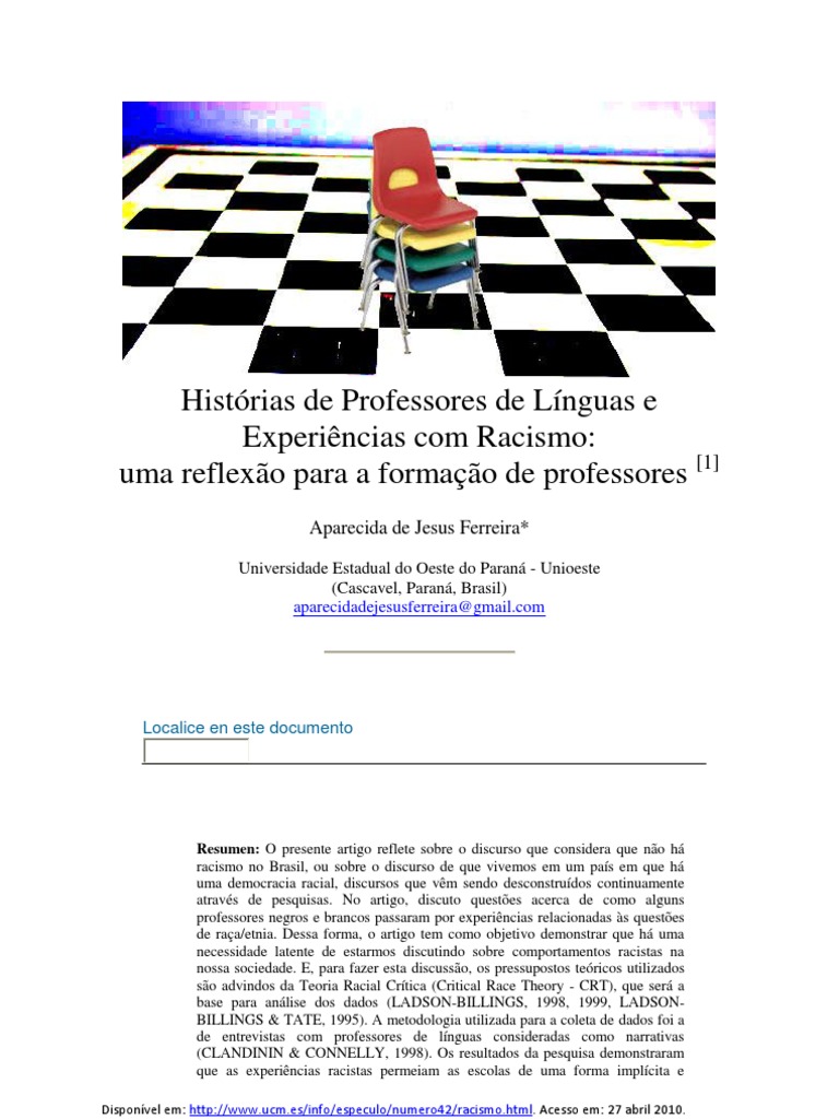 Disponível em: http://www.ucm.es/info/especulo/numero42/racismo.html. Acesso em: 27 abril 2010.