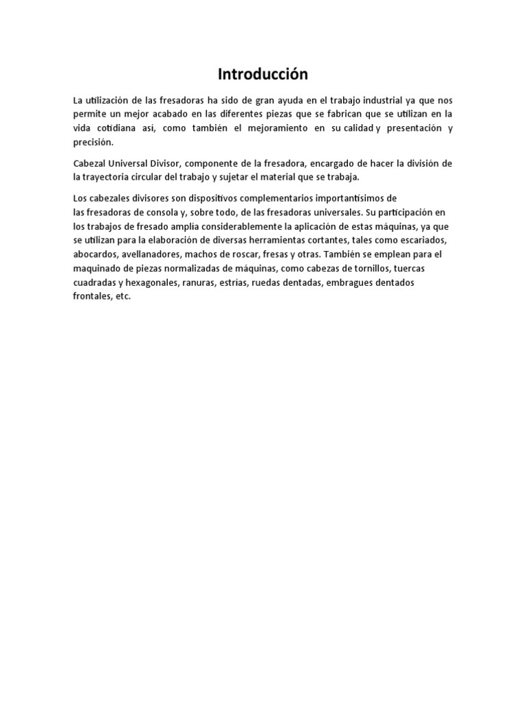 Importancia: El cabezal divisor se necesita para la fabricación de piezas en las que hay que