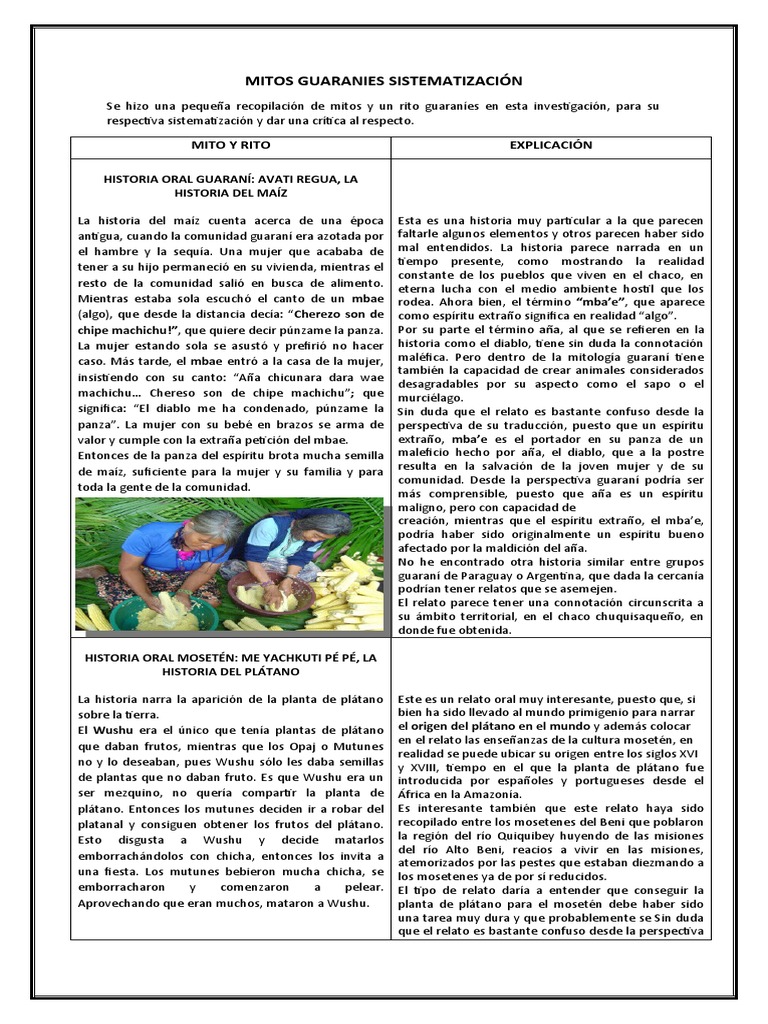 Se hizo una pequeña recopilación de mitos y un rito guaraníes en esta investigación, para su