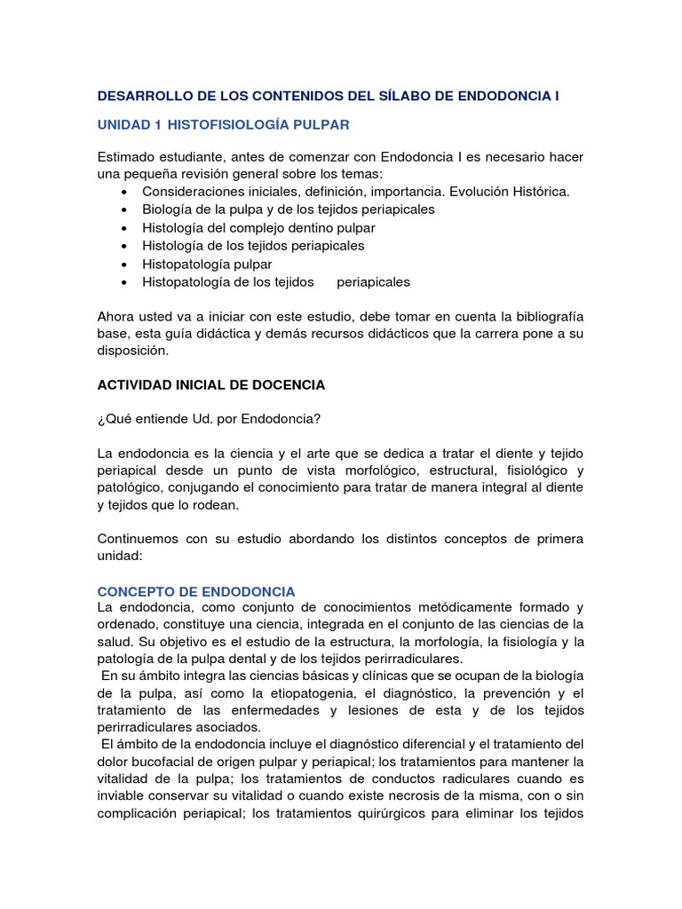 DESARROLLO DE LOS CONTENIDOS DEL SÍLABO DE ENDODONCIA I