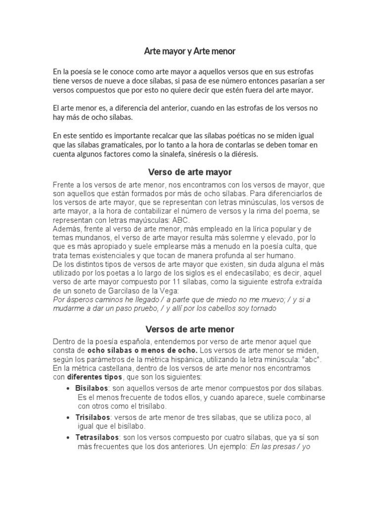 El arte menor es, a diferencia del anterior, cuando en las estrofas de los versos no