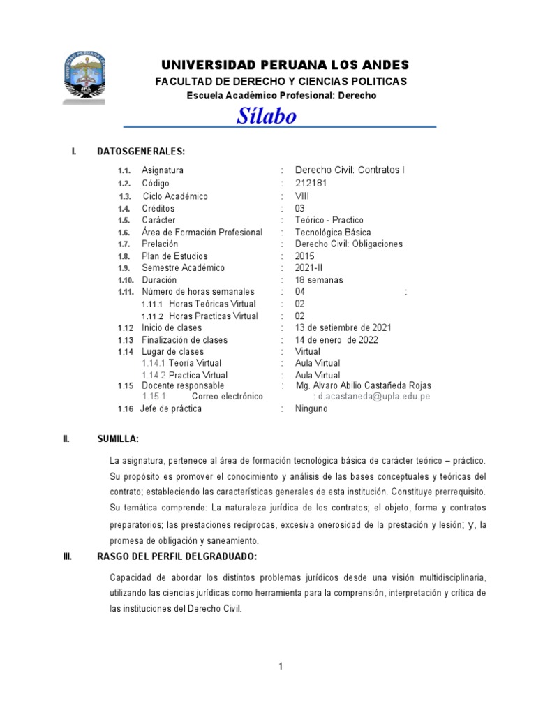 1.1. Asignatura : Derecho Civil: Contratos I
