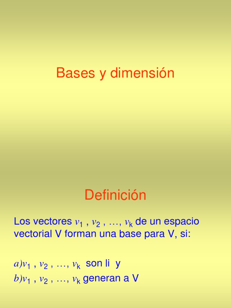 Los vectores v1 , v2 , …, vk de un espacio