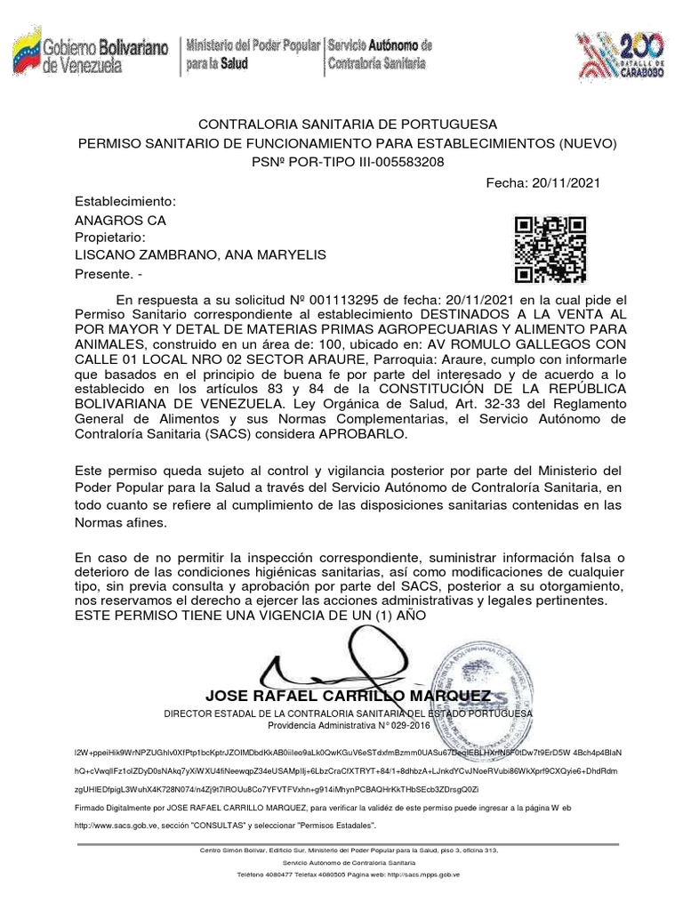 Firmado Digitalmente por JOSE RAFAEL CARRILLO MARQUEZ, para verificar la validéz de este permiso puede ingresar a la página W eb