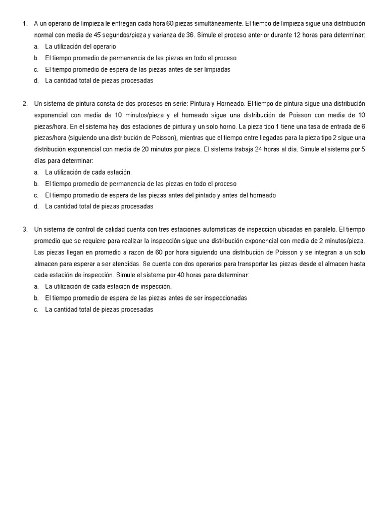 3. Un sistema de control de calidad cuenta con tres estaciones automaticas de inspeccion ubicadas en paralelo. El tiempo