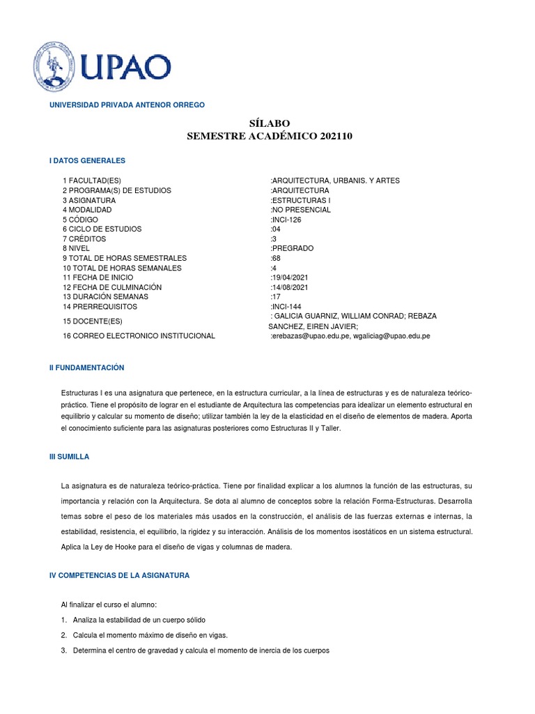 Estructuras I es una asignatura que pertenece, en la estructura curricular, a la línea de estructuras y es de naturaleza teórico-