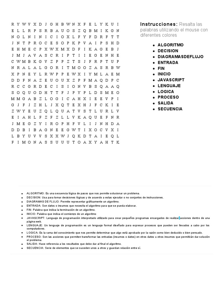 E L L R P S R B A U O S Z Q B M I K G N palabras utilizando el mouse con