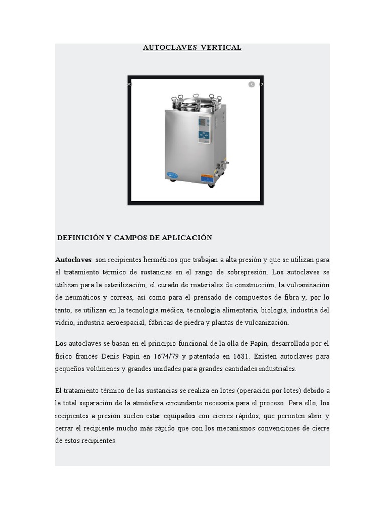 el tratamiento térmico de sustancias en el rango de sobrepresión. Los autoclaves se