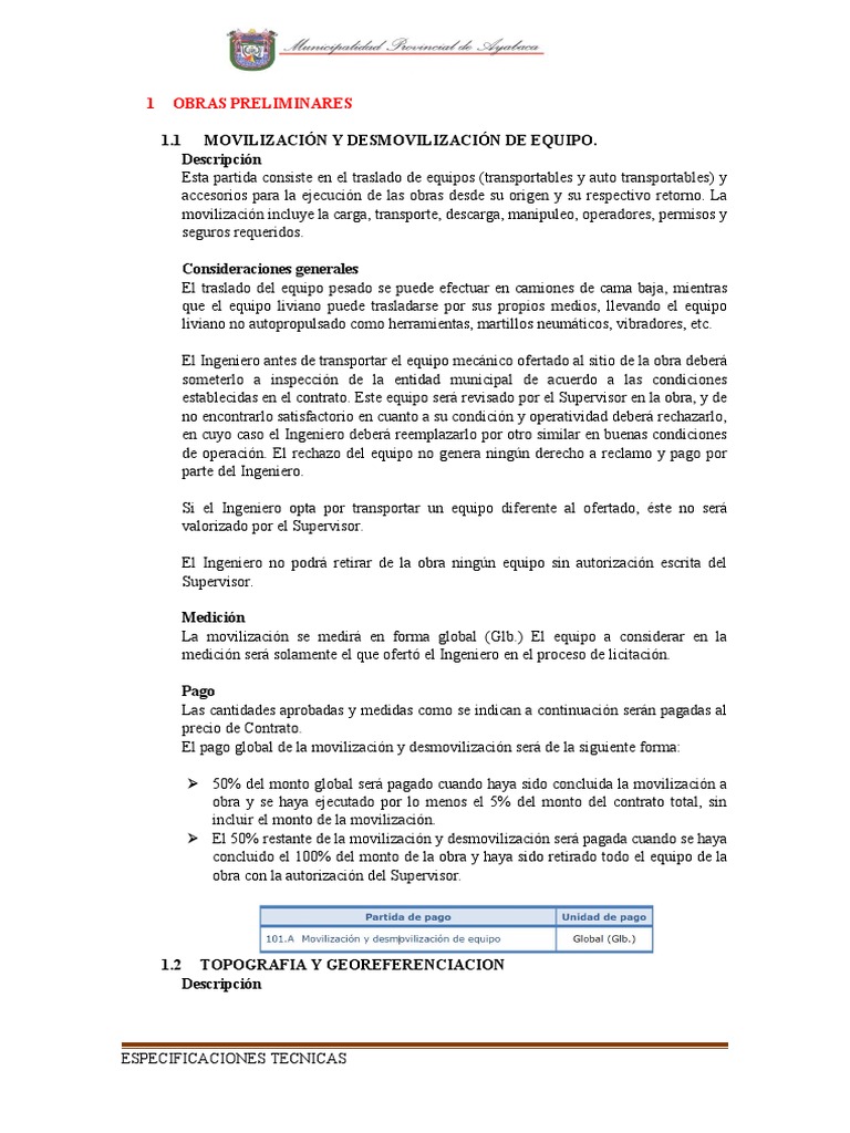1.1 MOVILIZACIÓN Y DESMOVILIZACIÓN DE EQUIPO.