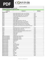 LISTA DE ALIMENTOS