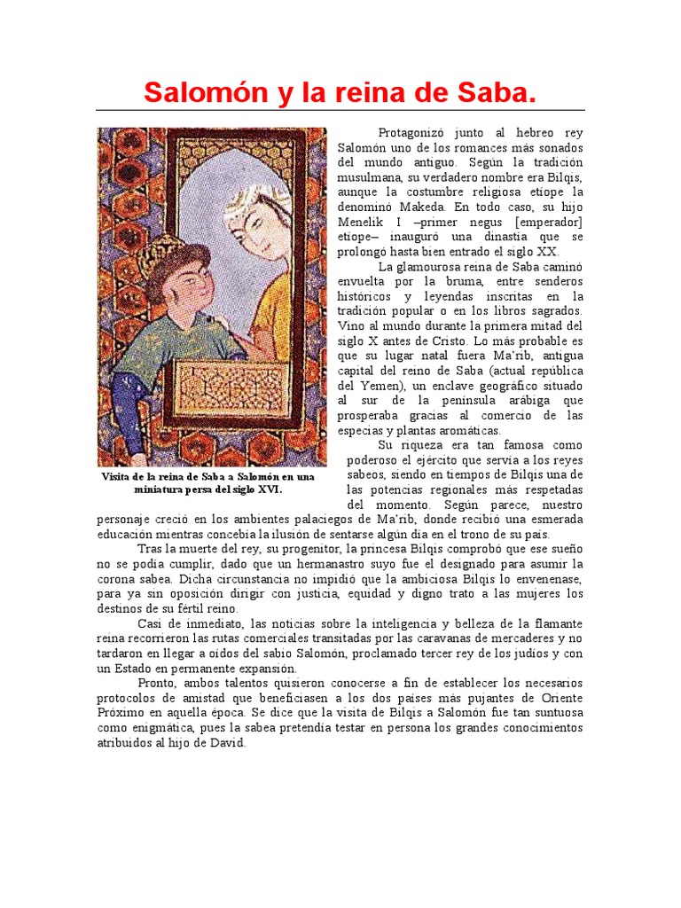 como enigmática, pues la sabea pretendía testar en persona los grandes conocimientos