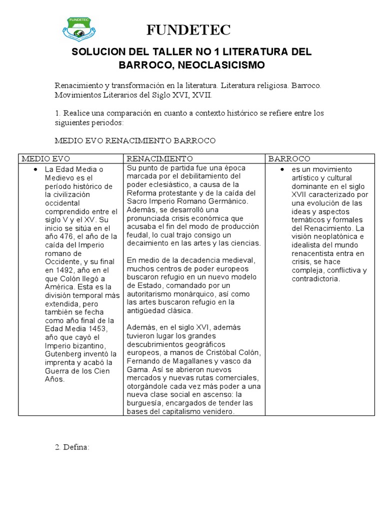 1. Literatura Barroca (incluya definición, características, tendencias y autores)