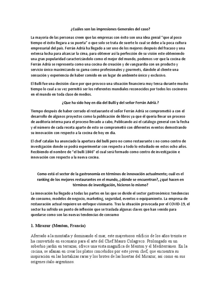 ¿Que ha sido hoy en día del Bullí y del señor Ferrán Adrià.?