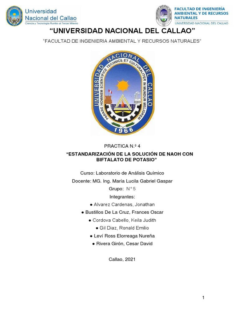 En este informe se va a desarrollar la estandarización del NaOH con biftalato de