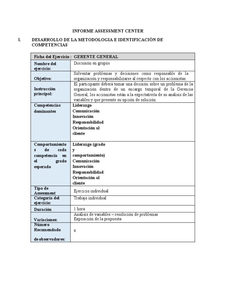 INFORME ASSESSMENT CENTER