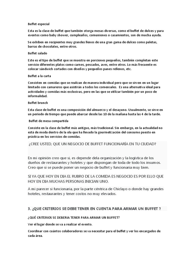 3. ¿QUE CRITERIOS SE DEBE TENER EN CUENTA PARA ARMAR UN BUFFET ?