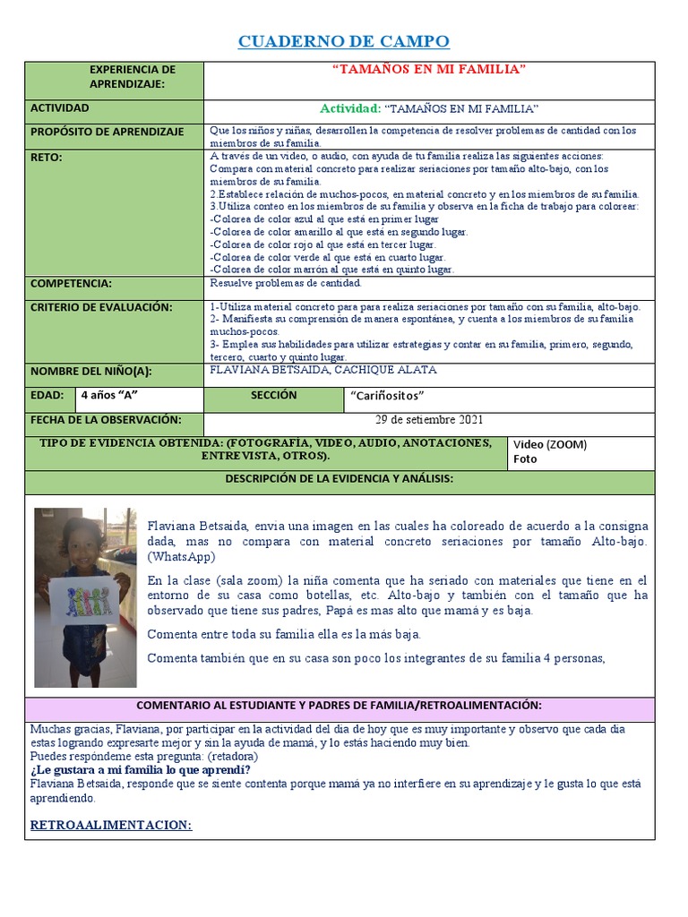 Flaviana Betsaida, es una niña que está logrando su aprendizaje al expresarse sola de esta manera ella está desarrollando