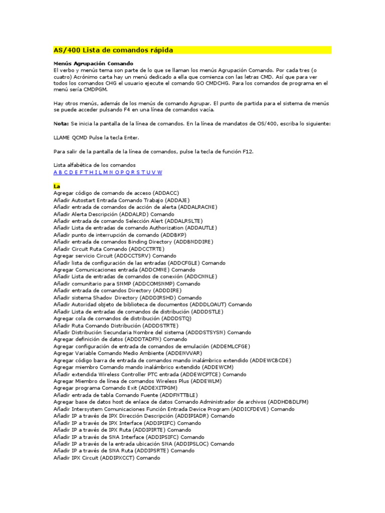 Lista Comandos As400