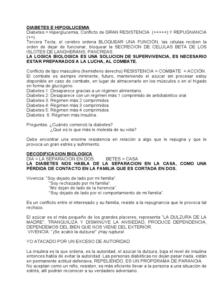 Diabetes = Hiperglucemia, Conflicto de GRAN RESISTENCIA (+++++) Y REPUGNANCIA