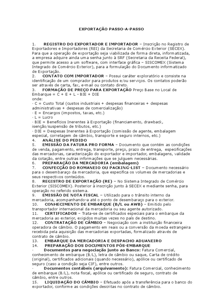 mercadoria ao exterior, exigidos muitas vezes no país de destino.